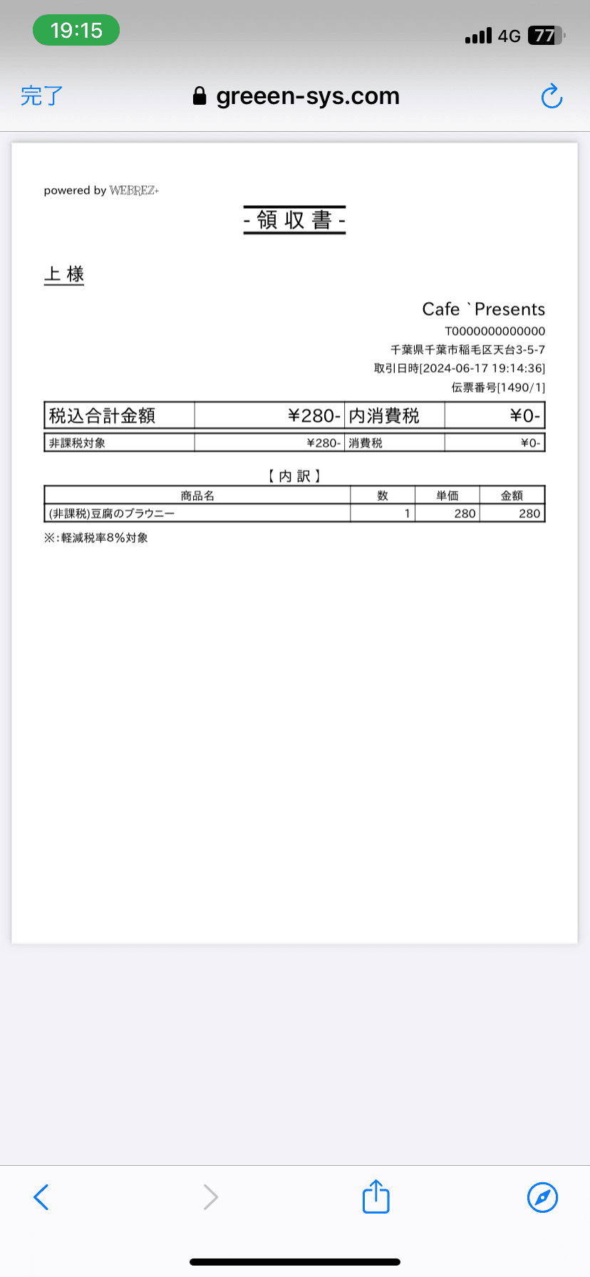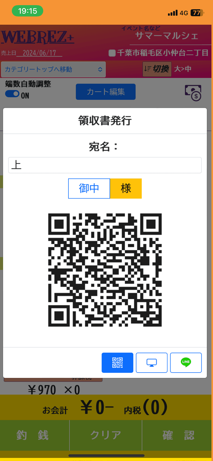 領収書はレジ画面に表示されるQRコードでお客様にお渡しします。